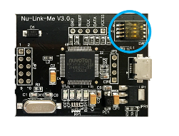 (1) 将 Nu-Link2-Me VCOM 指拨开关的 1 及 2 切换至 ON,启动虚拟串口 ( VCOM ) 功能。