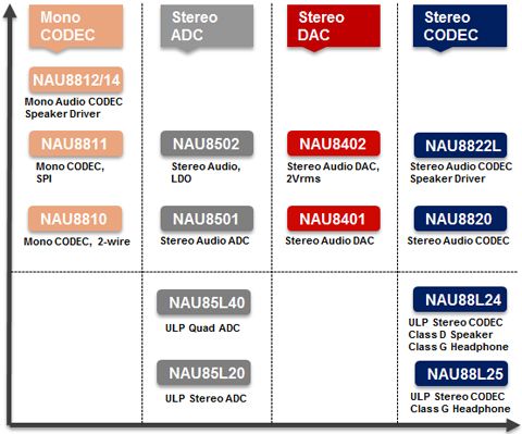 我司江南app公众号 目前主推此系列的产品型号主要是NAU8810YG与NAU8822YG,均备有现货及可提供技术支持。