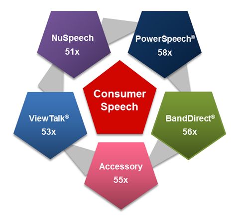 新唐提供不同种类的语音IC以应用于各式各样的玩具应用市场。PowerSpeech 是1~3通道的语音合成器应用于一般的电子玩具。BandDirector具有4~16通道的MIDI音乐效果,主要应用于乐器、婴儿玩具以及婴儿摇篮等。ViewTalk系列则是将语音、音乐及LCD驱动作高度整合以应用于早期教育市场。Accessory周边产品包括各种元件如MFID、Cap Sensor、I/O expander、Memory等,可与MCU或是与语音IC相结合以扩展更加复杂的应用。