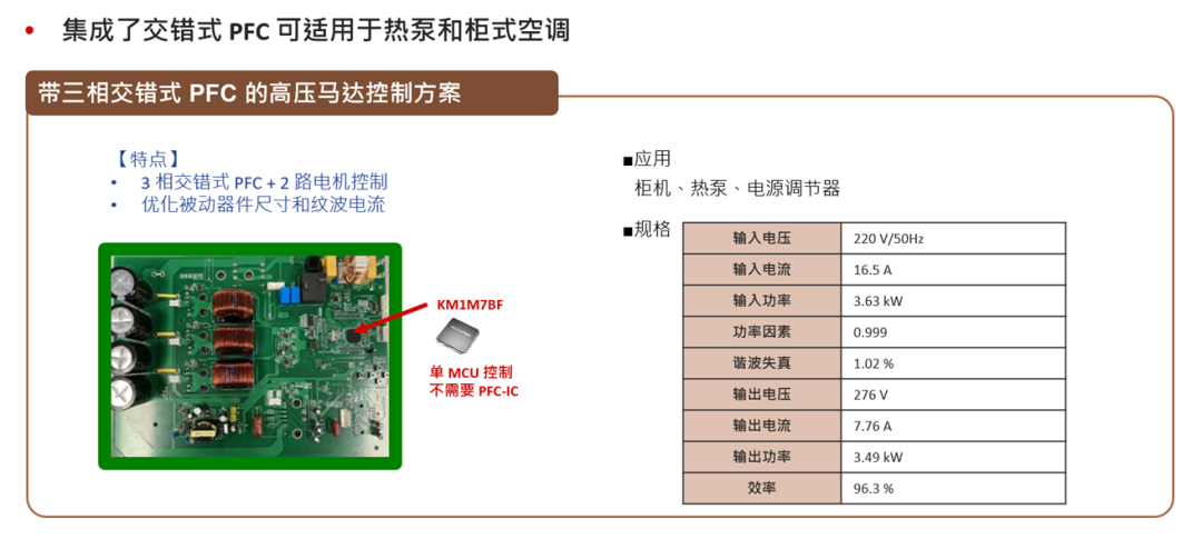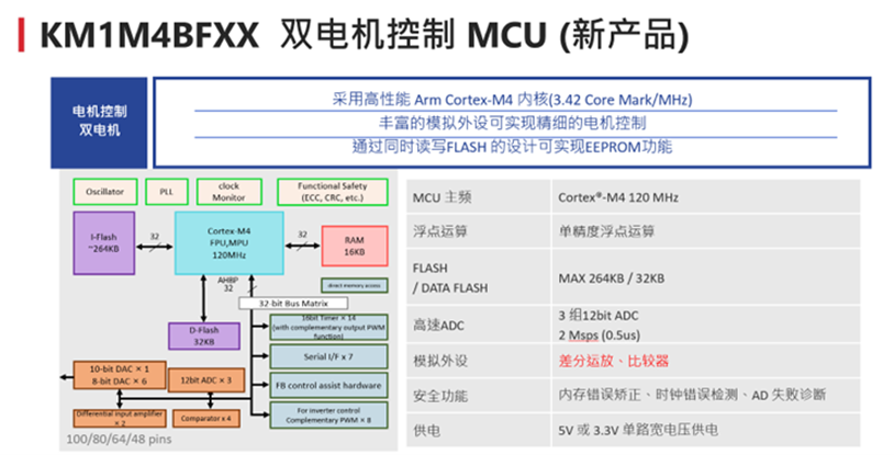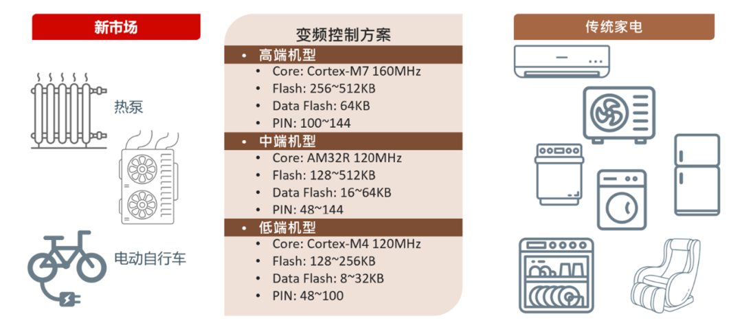 针对家用空调和热泵市场的应用推出了全新的M4系列内核产品,实现了单MCU 控制双电机+高频PFC的解决方案,更多方案与颖特新科技联系。