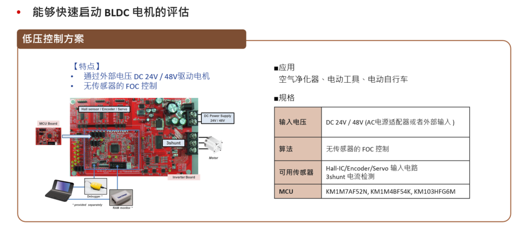 新唐科技通过20几年在变频领域积累的技术和生产经验,推出了一系列的变频控制MCU和解决方案,致力于给客户带来“更快的产品开发”,“更安全的保证”,“更低成本”的变频控制方案。