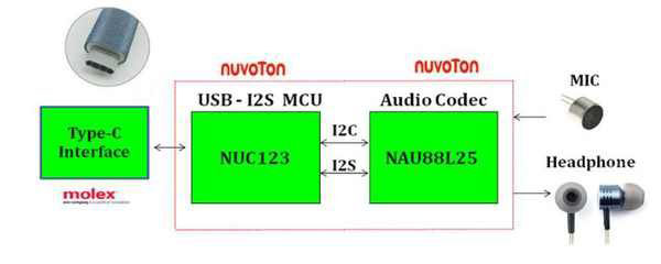 图示2-Nuvoton的USB Type-C数字耳机解决方案系统框架图