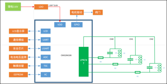 方案电路结构简单,无磁计量由 CM32M10xA 内置的专用低功耗旋转计数器(LPRCNT)模块实现,外部电路仅需电感、电容器件即可。通过 3 通道振荡电路,完成高精度计量的同时,还能实现计量防抖、圆盘脱落报警、强磁靠近报警相关功能。
