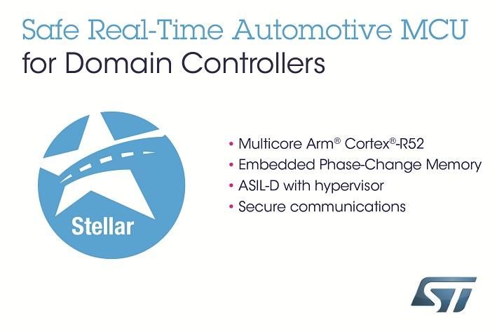 -提供先进的通信连接和数据安全功能,支持汽车向服务型系统架构转型-首款Arm® Cortex®-R52汽车微控制器,片上集成非易失性存储器,提供实时多核处理性能; ISO26262 ASIL-D认证保障和安全管理程序,为汽车工业带来新的功能安全参考标准-28nm FD-SOI 配合高效嵌入式相变存储器,将性能和可靠性最大化,同时将功耗最小化中国,2019年2月25日 – 横跨多重电子应用领域的全球领先的半导体供应商意法半导体 (STMicroelectronics,简称ST;纽约证券交易所代码:STM) 推出全新的恒星(Stellar)系列汽车微控制器(MCU),让汽车电子系统和高级域控制器变得更安全、更智能。恒星系列MCU支持基于各种“域控制器”(动力域、底盘域、ADAS先进驾驶辅助系统等)的下一代汽车架构。通过整合传感器数据的同时降低线束连接复杂性和电子元件重量,这些域控制器有助于汽车系统架构向面向软件和数据的架构转型。