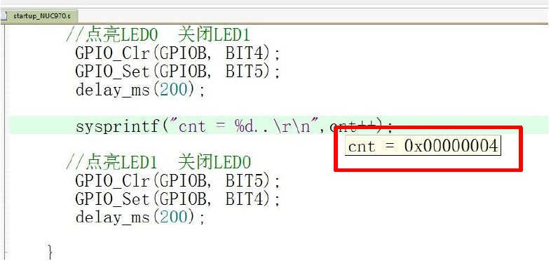 uVision5 IDE 提供了观察变量更简单的方法。在用户程序停止运行时,移动鼠标光标到要观察的变量上停大约一秒钟,就弹出一个“变量提示”块出来。