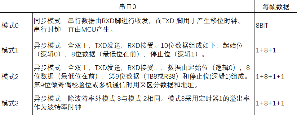我们也可以从手册发现每个串口具备4种模式,见下表