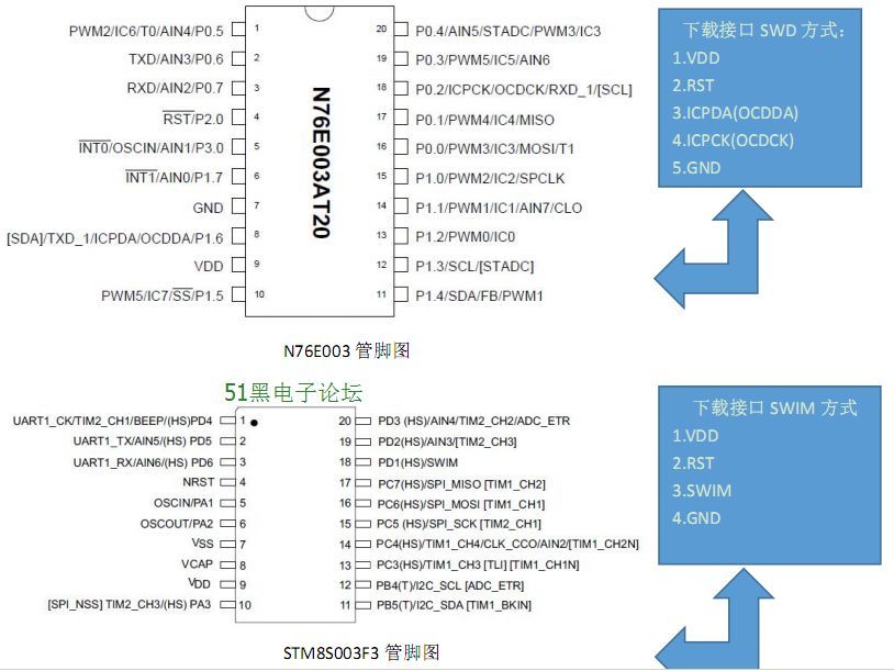 关于SWD,SWIM和JTAG之间的区别与联系,弄清楚明白剩下的就好理解了。今天先到这里,后续我会补上,上一篇是关于N76E003的学习的第一篇,我会继续完善的。