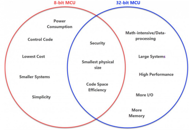 如图,Embedded Systems Engineering主编Lynnette Reese总结了8位和32位MCU的不同特点,其也表示,8位MCU比32位MCU具有30年的领先优势,并且在现有的嵌入式系统中占据主导地位。“8位MCU的低成本,低功耗和小物理尺寸仍然在主要需要简单控制代码而非处理能力的应用中引人注目。即使作为物联网应用,使用8位MCU也可以读取少量传感器并控制过程。”她说道。