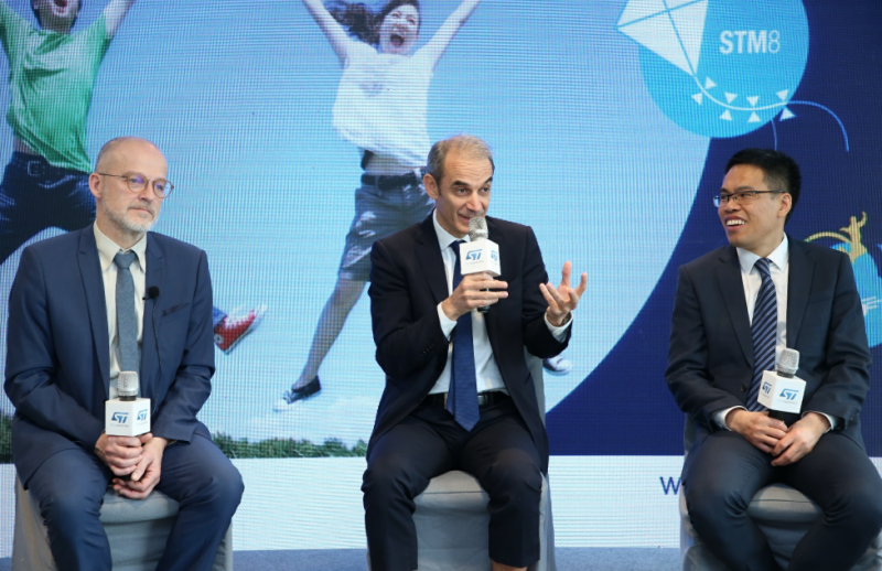 从左至右依次为:意法半导体微控制器市场产品经理Patrice Hamard、意法半导体亚太区微控制器和数字IC事业部及线上营销副总裁Arnaud Julienne及意法半导体中国区微控制器事业部市场及应用总监曹锦东