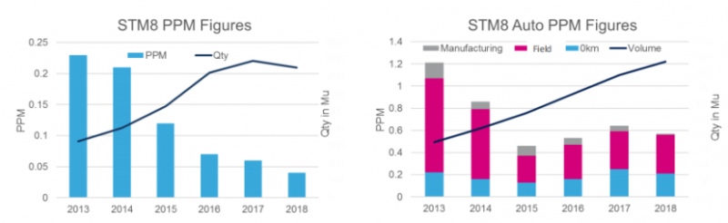 迄今为止,10年间STM8的累计出货量超过40亿片,接近了STM32十年的发货量。“过去我们谈的更多是STM32,但是STM8同样对ST非常重要。”Arnaud强调道。