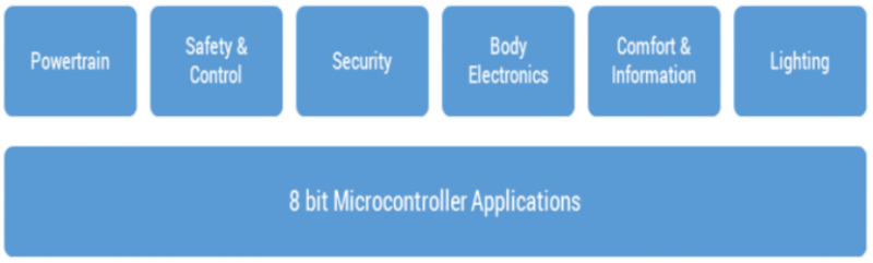 Mordor Intelligence制图显示,仅在汽车应用中,8位MCU依然能够胜任大部分车用功能。