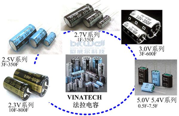 2.3V系列法拉电容具有体积小,容量大的特点,最高具有15万次的充放电使用寿命,广泛应用于太阳能道钉灯,太阳能草坪灯,太阳能交通指示灯等场合。在道钉灯产品中,使用法拉电容替代原有的电池,可大大延长产品的使用寿命,降低产品的维护成本,在出口中东、非洲的太阳能道钉灯产品中,法拉电容已经成为客户指定的必用器件。
