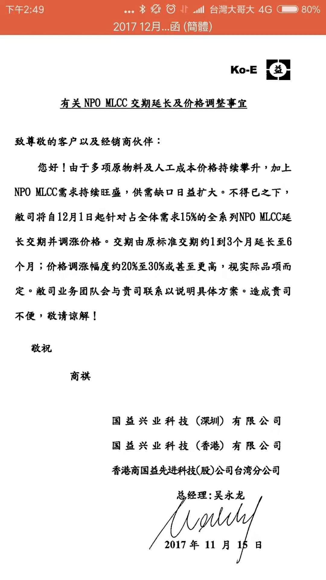 刚刚!国巨又发通知了,延长交期+价格调涨达30%,MLCC从业者全天候头疼!