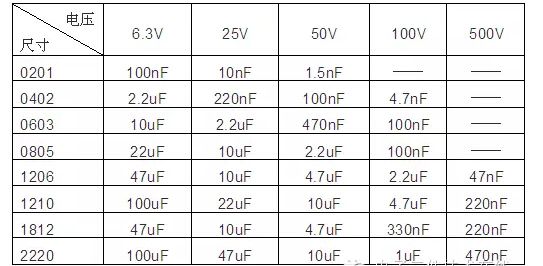 表五 X7R MLCC量产容量极大值