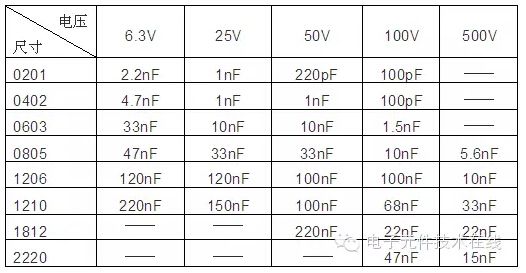 下表给出了X7R电容器可选取的容量范围最大值.