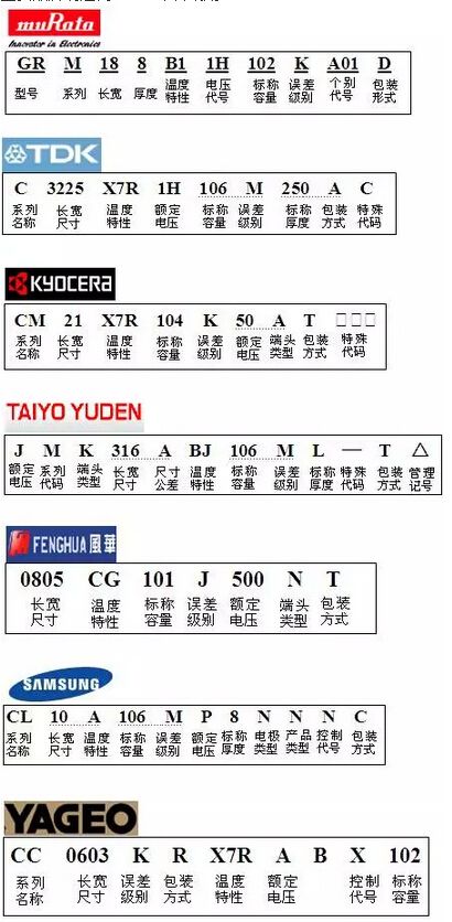 MLCC主要品牌及其命名规则: