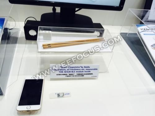 蓝牙以其低功耗的优势在智能硬件中被广泛应用,而智能硬件体积很小,因此蓝牙模块也快速向小型化演进,上图的这款百度筷子便是最好的实例,它里面用到的就是TDK的SESUB蓝牙模块,其中SEUB-PAN-T2541相对于传统蓝牙模块体积减少65%,另一款SESUB-PAN-D14580相对于传统蓝牙模块体积减少83%。这款筷子与手机的APP连接以后可以检测食用油的品质,水果的甜度,利用百度的大数据分析优势还可以查到产地,如果以上功能真的实现了是不是就意味着食品安全问题就可以解决了?