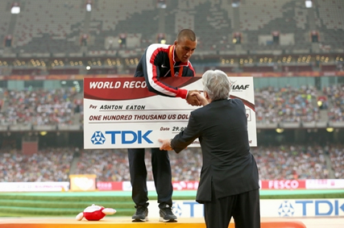 从1997年的雅典大会开始,当男子项目中产生新世界记录时, TDK就拥有了向该男子项目赠予10万美元作为‘World Record’奖金的赞助商权利。过去,TDK曾6次为新世界纪录赠予奖金,本次为第7次。
