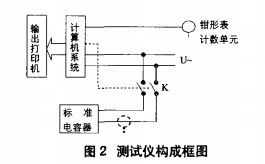 根据电容测试仪原理拟定测试仪由计算机系统、钳形表传感器、标准电容修正系统、电压输出单元组成,如图2所示,该装置整体重量不足3kg,适合现场携带。