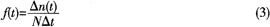 其中,△n(t)是在t~t+△t时间内失效的产品数,这样,f(t)在0~t时间内的积分应等于: