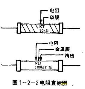 电阻的种类很多,员常使用的有碳膜电阻、金后膜电阻、线统电阻等,标志符号分别为RT、RJ、Rx。