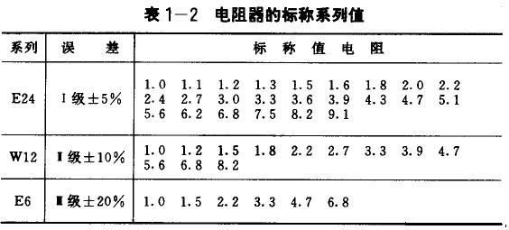 电阻的标称值实际上为一系列有限数值,如表1—2所