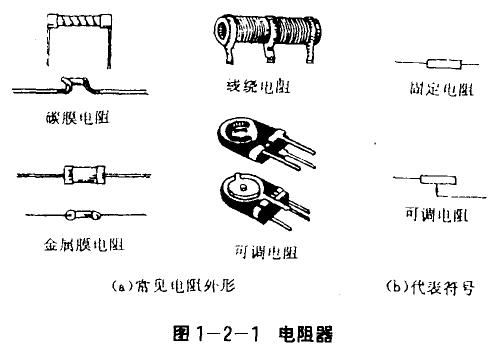上述几种电阻的常见外形及代表符号如图1—2—1所