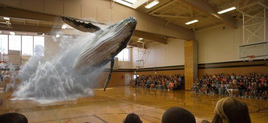 还有一点很重要,就是Magic Leap并不是裸眼观看的,不要被曾经红极一时的「鲸鱼视频」误导,Magic Leap同样需要一个头戴显示器,「鲸鱼视频」应该是后期做的特效。人类希望能凭空看到一个虚拟物体,已经想了几百年了,各种科幻电影里也出现了很多在空气中的全息影像。其实想想本质就知道,这事从物理上很难实现的:纯空气中没有可以反射或折射光的介质。显示东西最重要的是介质。