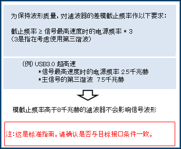 使用不合适的滤波器会破坏信号,这种滤波器在信号频率范围内的差模插入损耗较高或与传输线路阻抗不匹配。因此,请不要选择在插入前会影响信号质量的滤波器。