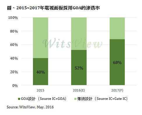 面板厂积极降低生产成本,2016 下半年电视面板采用 GOA 设计渗透率可逾 50%