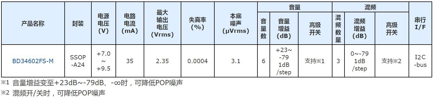 通常在开/关混频时会出现"噗呲"等令人不适的POP噪声,利用ROHM独有的"Advanced Switch(高级开关)"技术降低了POP噪声。