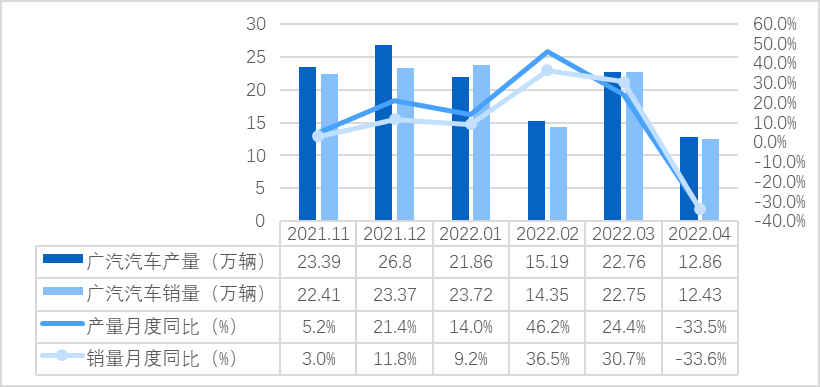 缺芯影响下,广汽汽车4月产销量显著下滑