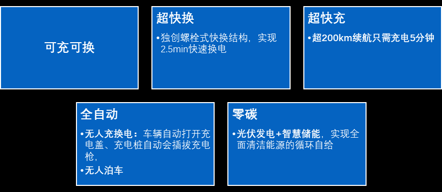 该超级充换电站采用光伏能源发电,打造光、储、充、换一体补给生态和电池循环生态。充电站内配备A480超充桩,拥有目前最快的480kW充电功率,最大电流达600A,充电5分钟可获得200km续航。站内还提供快速换电服务,汽车泊车进入换电区,2.5分钟就能完成电池更换,让汽车迅速恢复续航。