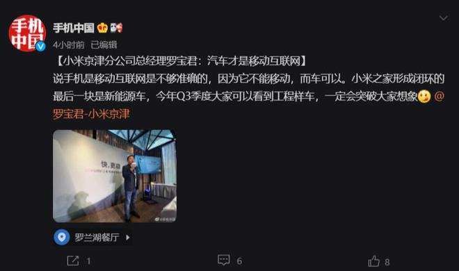 据手机中国消息,小米造车迎来最新进展,小米京津分公司总经理罗宝君接受采访时表示,今年第三季度就可以看到工程样车了,并且表示“一定会突破大家想象”。
