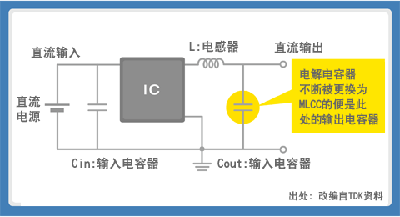 作为DC-DC转换器中自己发热问题、节省空间及提高可靠性的解决方案,将电解电容器更换为MLCC的对象主要为该输出电容器。