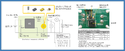 使用如下评估线路板,对降压型DC-DC转换器输出电容器的输出电压进行了比较。用于比较的电容器为静電容量22μF的普通铝电解电容器、钽电解电容器、功能性高分子铝电解电容器以及MLCC。