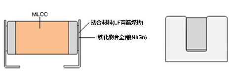 金属端子通过接合材料(LF高温焊接)与电容器的外部电极相结合,使金属端子成为接合电路板的媒介。金属端子的形状采用能够降低啸叫效果的U字形。它只是与电容器上压电效应比较小的WT面外侧部分结合,从而减低电容器振动的传递。
