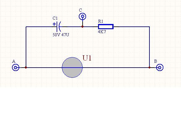 从这张图看,如果上频率是1KHz交流电时,电容负端(C端)可以得到与A端相同的信号。
